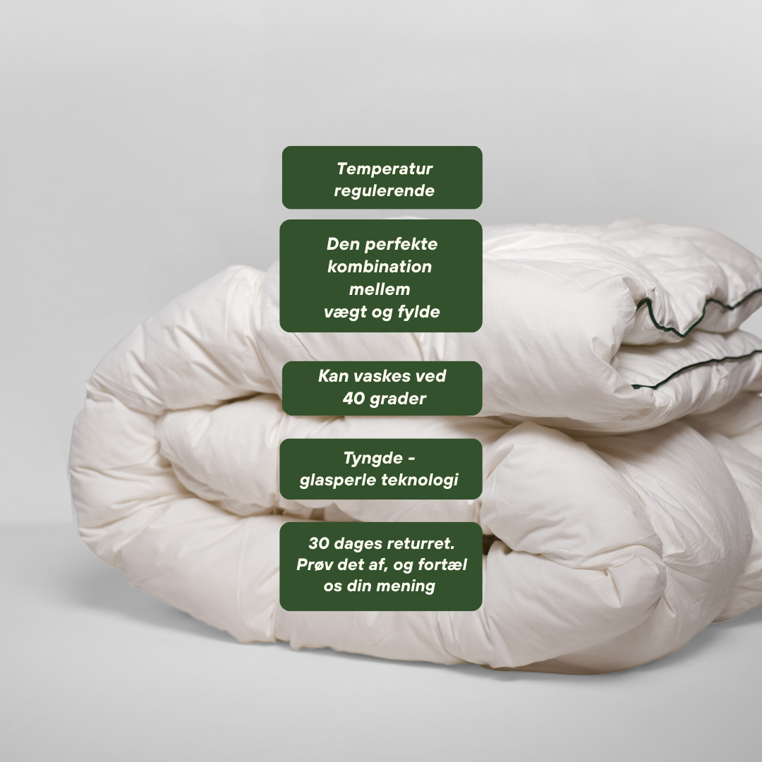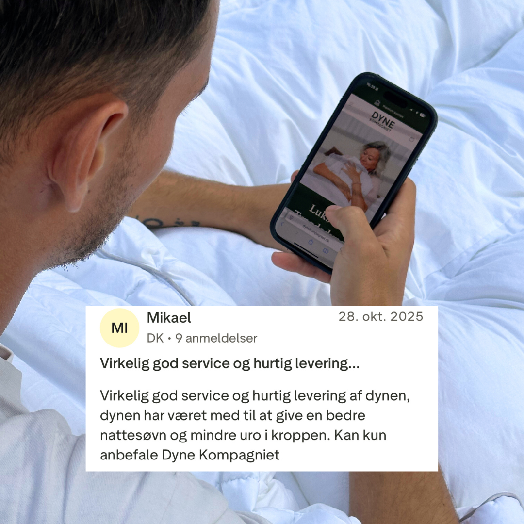 Vi tilbyder hurtig levering på 2–4 hverdage direkte fra vores danske lager. Vi har fri fragt på alle dyner. Så snart din ordre er sendt, modtager du et trackinglink, så du kan følge din pakke hele vejen frem til døren.